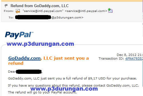 Akan ada email notifikasi terkait reply pada point nomer 8, silahkan bersabar untuk menunggu. Jika pembayaran menggunakan paypal seperti yg saya alami, tidak sampai 24 jam sejak reply full refund sudah langsung dikirimkan. Buat yang mau dapat diskon 20% silahkan langsung meluncur ke diskonan godaddy, baca juga tutorial Transfer Domain ke Godaddy. Sekian dari www.p3durungan.com semoga bermanfaat.
